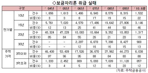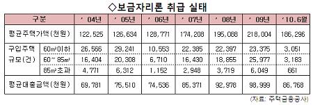 주택금융공사 보금자리론, 2004년3월∼2010년6월 취급 실태 분석