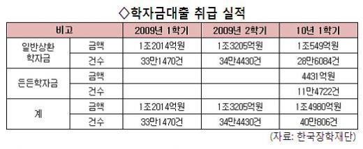 학자금 대출 신청 건수와 금액도 증가세다. 2009년 1학기 33만1470건(1조2014억 원)을 기록한 학자금 대출은 2학기 34만4430건(1조3205억 원), 2010년 1학기 40만806건(1조4980억 원)으로 계속 늘었다. 경기가 좋지 않아 가정 형편이 어려운 학생들이 많아져 대출이 늘었고, 이러다보니 자연스럽게 연체건수도 증가했다는 분석이다.