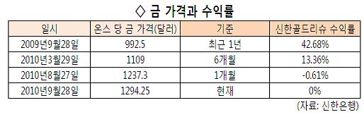 이러다 보니 자연스레 실제 거래는 별로 없다. 특히 금 가격이 온스 당 1200달러를 돌파한 이후 온스 당 1300달러 아래에서 큰 폭으로 움직이다보니 최근 수익률은 좋지 않다. 이날 기준 1개월 수익률은 -0.61%다. 반면 오래 전에 가입한 사람들의 수익률은 좋다. 6개월 수익률은 13.36%, 1년 수익률은 42.68%를 기록 중이다.