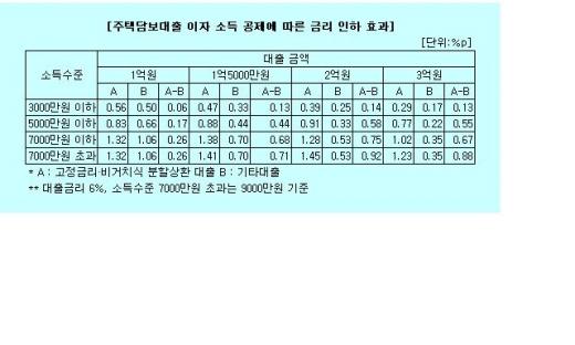 다만 소득 공제 혜택를 감안한 금리 인하 효과는 추산한 게 있다. 많게는 1.5%포인트에 가까운 금리 인하 효과가 있는 것으로 추산됐다.