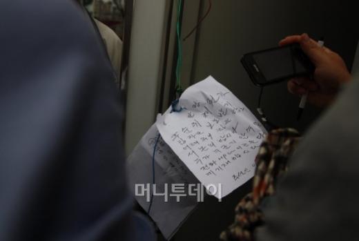 누군가 흰 종이에 "후순위채권 가입자는 보호받기 어려우니 힘을 합쳐서 논의 합시다. 누가 누군지 알수 없으니 전화번화와 이름을 다음에 기재합시다"라고 썼다. 이미 다섯명이 이름을 기재했다.