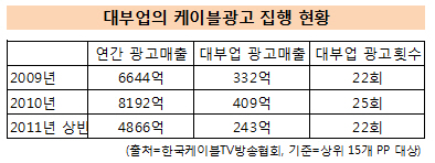케이블TV방송협회에 따르면 지난 2010년 상위 15개 프로그램공급사업자(PP)의 대부업 광고 매출은 409억이었다.