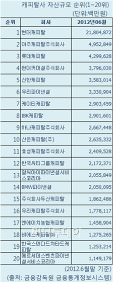 무엇보다 산은금융지주의 두산캐피탈 인수로 중상위권 내 경쟁이 심화될 것으로 예상된다. 지난 6월 말 기준으로 할부금융·리스업을 하는 캐피탈사 46곳(여신금융협회 회원사)가운데 두산(1조8625억원)과 산은(2조6353억원)의 자산규모는 각각 15위, 10위다. 자산규모가 1조~3조원인 캐피탈사는 14곳이다.