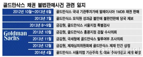 문제는 골드만삭스가 2012년 10월부터 지난해 6월까지 국내 기관투자자를 대상으로 1MDB 채권 11억 2400만달러어치를 판매하는 과정에서 홍콩법인이 국내법인을 통하지 않고 직접 판매했다는 점이다.
