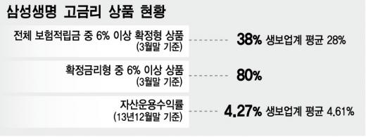 한편 삼성생명은 전체 보험상품 중 6% 이상 금리를 돌려줘야 하는 상품 비중이 38%에 달한다. 삼성생명은 수익성 악화 등에 대비해 지난달 1000여명의 직원을 감축하는 대규모 구조조정을 단행했다.