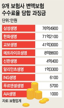 공정위는 지난해 3월 9개 생보사가 변액보험 수수료를 담합했다면서 총 205억원의 과징금을 부과한 바 있다. 이들 보험사들이 GMDB(최소한의 사망보험금을 보증받기 위해 고객이 내는 수수료) 수수료를 0.1%로, GMAB(수익률이 마이너스가 나도 연금개시 시점에 원금을 보장받기 위해 고객이 내는 수수료) 0.5%로 각각 담합했다는 것이다.