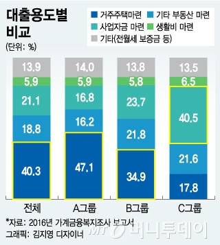 문제는 DSR이 40% 미만이면서 DTA도 100% 미만인 C그룹이다. 32만 가구(부채규모 94조원)가 여기에 포함된다. 가구수는 집계되지 않았지만 이미 상환불능에 빠진 차주(D그룹)가 보유한 부채는 100조원으로 추정됐다. 정부 관계자는 "C그룹은 현재는 정상 차주이지만 금리인상 등 약간의 충격만 있으면 당장 연체 상태에 빠질 수 있는 그룹"이라고 평가했다.