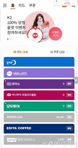 사용법도 간단하다. 스마트폰을 통해 앱을 내려받은 후, 해당 앱을 통해 자신이 원하는 브랜드 카드를 앱 속에 다운로드 받으면 모든 절차가 끝난다. 각종 멤버십 카드는 물론이고 쿠폰, 교통카드, 체크카드 등도 바코드 형태로 저장할 수 있다.