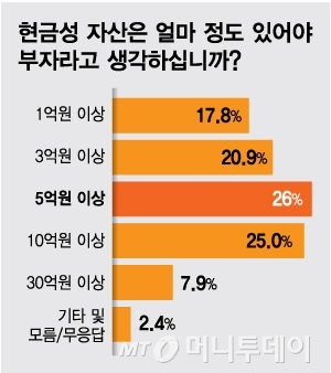 한국인들의 부자에 대한 기준은 올해에도 달라지지 않았다.