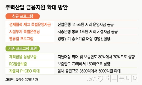 조선, 자동차 등 주력산업 중소·중견기업들을 대상으로 2조5000억원의 저리 운전자금 공급이 시작된다. 1조원의 시설자금대출도 다음달부터 시중은행들을 통해 공급된다.