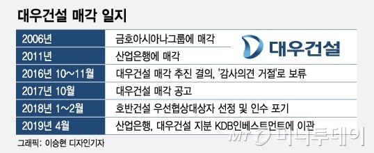 산은에 남은 금호그룹의 그림자는 KDB생명(옛 금호생명), 금호그룹에 ‘승자의 저주’를 안겼던 대우건설 두 곳이다. 이중 KDB생명은 네 번째 매각 도전에 나선다. 산은은 지난 9월 KDB생명의 공개 매각 절차를 개시했지만, 아직 예비입찰 일정을 확정하지 못할 만큼 전망은 불투명하다. 이달 중 투자의향서(LOI) 접수와 입찰적격자(숏리스트)를 확정하고, 연내 우선협상대상자를 선정한다는 시간표를 짰지만, 인수 후보들의 반응은 미지근하다.