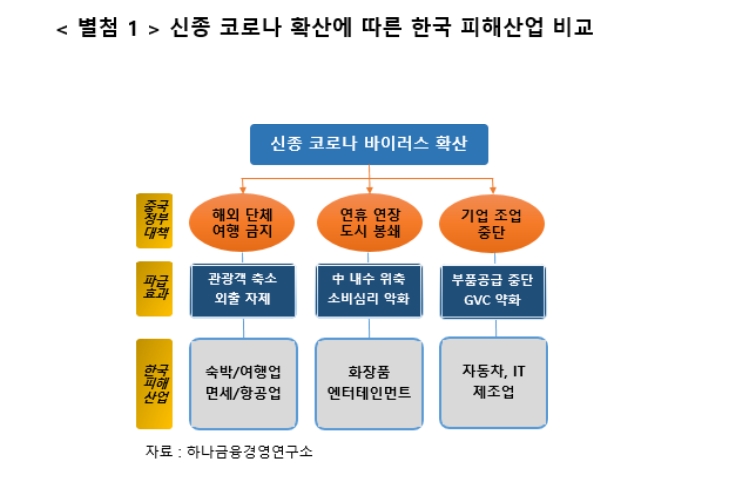 하나금융경영연구소, '코로나19 확산에 따른 산업별 영향' 보고서