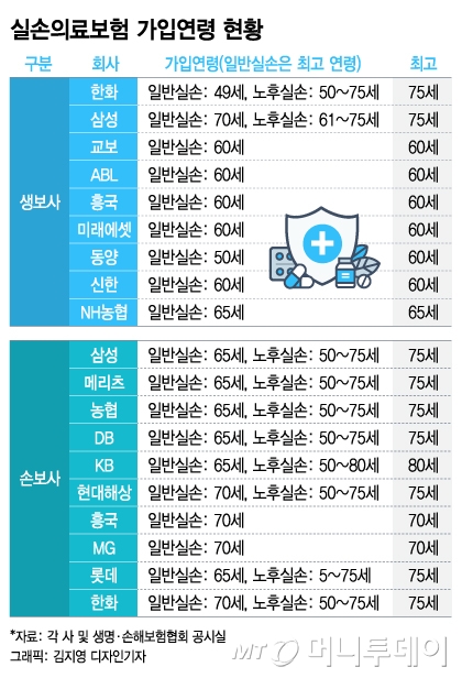 29일 보험업계에 따르면 한화생명은 최근 일반 실손보험 가입 가능연령을 기존 65세에서 49세로, 동양생명은 60세에서 50세로 변경했다.