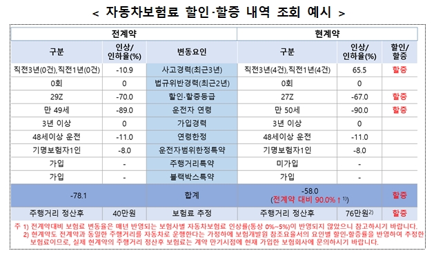 다만 자동차보험 갱신 때 무사고임에도 보험료가 할증되는 경우도 종종 발생하는데, 가입자들이 왜 보험료가 올랐는지 확인하기가 어렵다는 지적이 제기됐다. 자신이 가입한 보험사를 방문하거나 전화통화를 통해 확인이 가능하긴 하지만 시간이 오래 걸리기 때문이다.