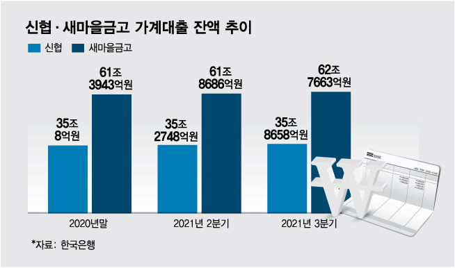 새마을금고의 가계대출 잔액 역시 6월 61조8686억원에서 9월 62조7663억원으로 1분기 동안 8995억원 늘었다. 지난해 말부터 올 6월까지 2분기 동안 상승한 잔액 규모(4743억원)보다 2배에 달하는 증가폭이다.