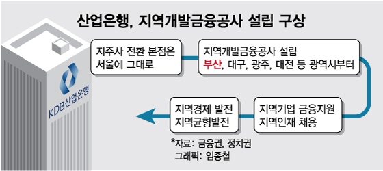11일 금융권, 정치권에 따르면 산은은 대통령직인수위원회 활동 기간 중 국회 정무위원회 소속 국민의힘 의원들에게 부산 이전 대신 산은을 지주사로 전환한 후 자회사인 지역개발금융공사를 부산에 설립하는 방안을 대안으로 제안했다. 지주사 본점은 서울에 그대로 남는다.
