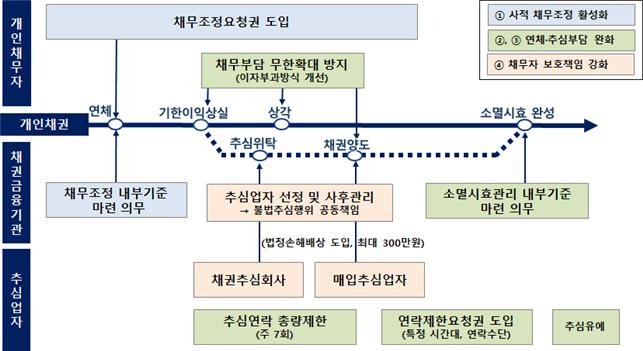금융당국 관계자는 "채무자의 권익을 증진하고 신속한 재기를 지원하고, 장기적으로 금융회사는 장기적인 회수가치도 제고되는 '상생의 선순환 구조가 형성'될 것"이라며 "이달 중 국회에 제출할 예정으로 국회 의결 시 공포 후 1년이 경과한 날부터 시행될 예정"이라고 말했다.