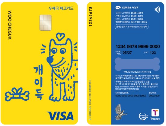 '개이득'은 한자 '개(開)'를 접두사로 사용해 재미를 더하면서도 혜택은 열어준다는 의미를 담았다. 또 우정사업본부 최초로 캐릭터 형의 세로형 디자인을 채택했다. 만 12세 이상이면 누구나 발급할 수 있다.