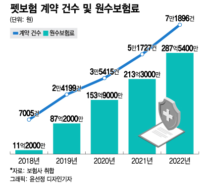 그러나 보험사들이 지난해 보유한 반려동물보험 계약 건수는 7만1896건에 불과하다. 펫보험에 가입된 반려동물이 전체 반려동물의 1%도 되지 않는 셈이다.