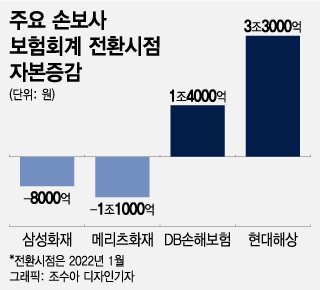 예실차 원천이 자본금이라는 점도 문제라는 지적이다. 보험사들은 새 회계기준으로 전환하는 시점에 계리적 가정에 따라 부채를 재산정했는데 메리츠화재와 삼성화재는 타사 대비 보험금이 많이 나갈 것으로 가정했다. 보수적 가정에 따라 메리츠화재의 자본금은 1조1000억원 줄었고 삼성화재는 8000억원 감소했다.