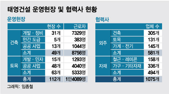 현재 태영건설의 운영 사업장은 전국 약 112곳, 협력사는 1075업체, 수분양자는 1만9871세대에 달한다고 알렸다.