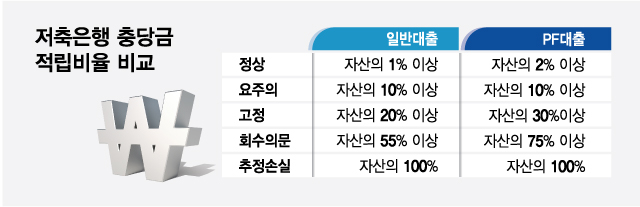 현재 저축은행 기준으로 부동산 PF 충당금은 고정이하는 자산의 30%, 회수의문은 자산의 75% 이상을 쌓도록 하고 있다. 일반대출 대비 많게는 2배 규모이나 담보로 잡은 토지의 자산재평가 주기가 2년으로 브릿지론 만기 3~6개월과는 동떨어졌다. 특히 최근 떨어진 가격을 충당금에 제대로 반영하고 있지 않아 재평가 주기를 2년 이내로 단축해야 한다는 지적이 나온다.