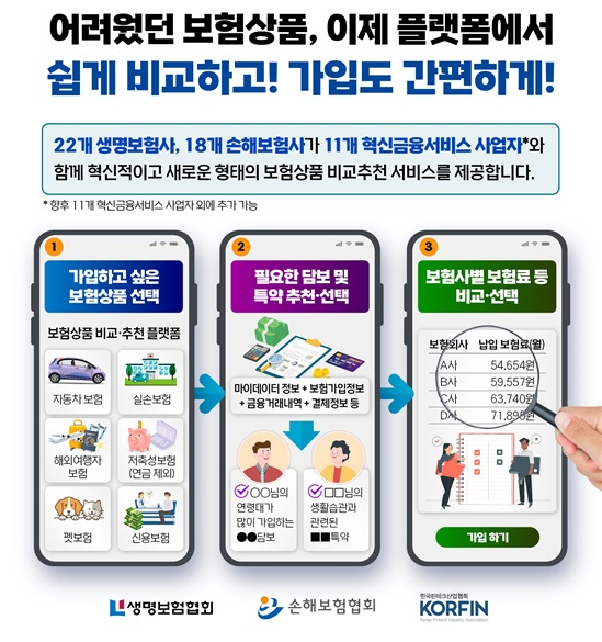 보험 비교추천은 온라인 플랫폼의 모바일 앱(애플리케이션)에서 여러 보험회사의 온라인 보험상품 가격과 조건 등을 비교해보고 간편하게 가입할 수 있는 서비스다. 지난해 7월 금융위의 혁신금융서비스로 지정돼 11개 핀테크사들이 참여 의사를 나타냈다.