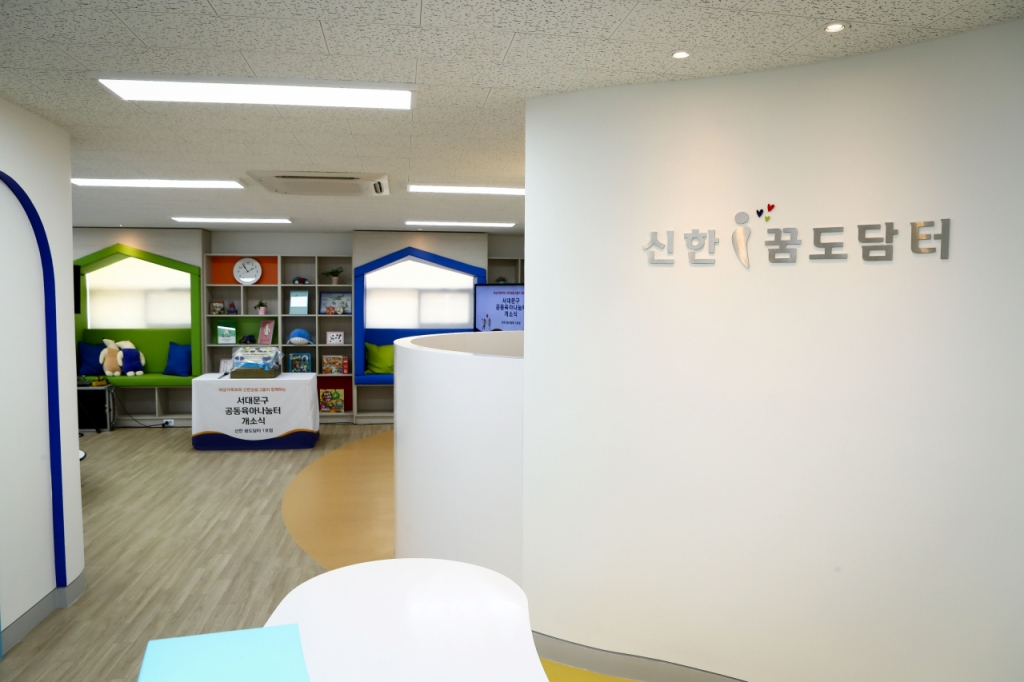 #서대문구 성원아파트 관리사무소 2층은 올라가는 계단부터 달랐다. 잿빛 시멘트가 아니라 알록달록 색깔의 나무를 덧붙여놓으니 놀이터에 가는 듯 했다. 2층엔 신한금융이 2018년부터 구축하고 있는 공동육아나눔터 '꿈도담터' 1호점이 자리하고 있다.