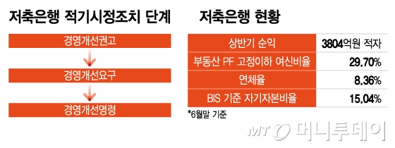금융권 관계자는 "적기시정조치 '권고'만 받아도 부실금융기관으로 낙인이 찍혀서 뱅크런(대규모 자금이탈) 가능성도 배제하기 어렵다"며 "과거 저축은행 사태때 만들어 놓은 기준을 현 시점에 그대로 적용하는 것은 무리가 있다"고 지적했다.