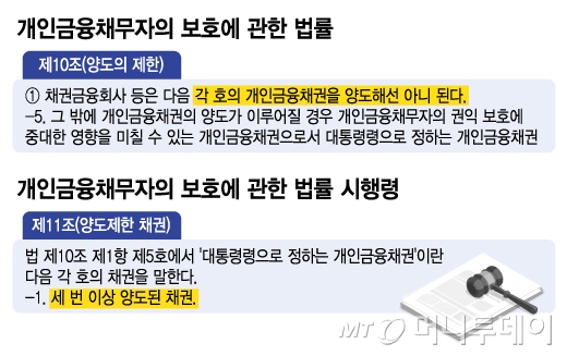 하지만 법 시행 이전의 매각에는 소급적용이 되지 않아 다음달까지 개인 금융채권의 양도가 쏟아질 수 있다는 우려가 나온다.