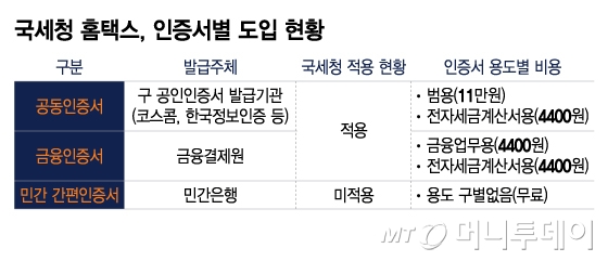 국세청 관계자는 "다른 정부부처의 인증서 도입 현황을 살펴보며 은행과 소상공인 측의 다양한 의견을 듣고 있는 상황"이라며 "인증 수단이 확대되는 면은 긍정적이나 기술적이나 보안 문제는 추가로 살펴봐야 한다"고 말했다.
