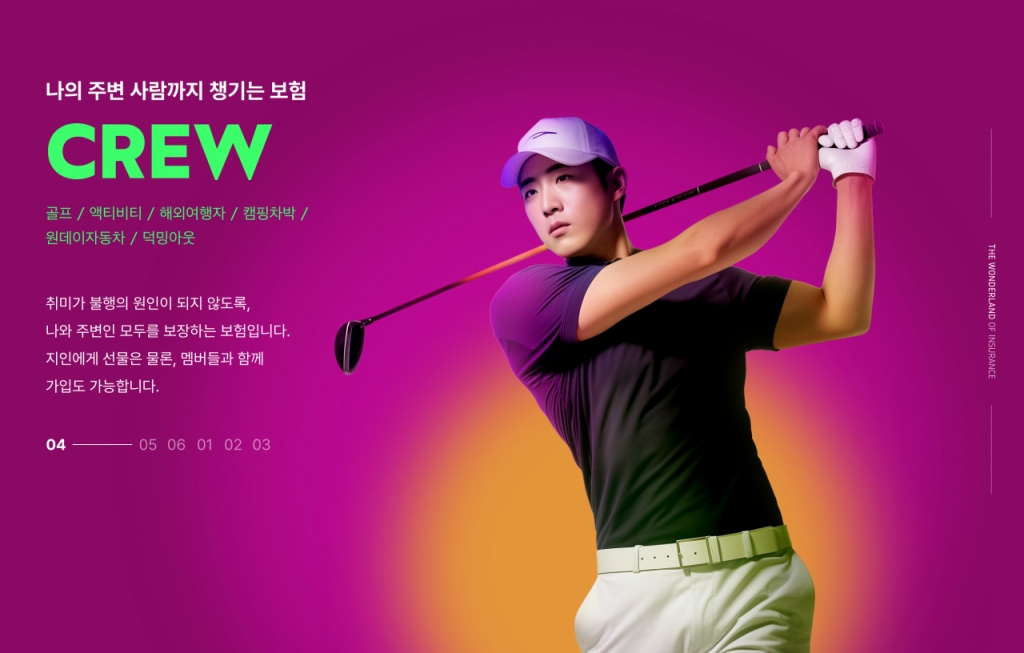 롯데손보의 'CREW 골프보험'은 홀인원 비용과 배상책임 등 골프보험의 기본 보장 이외에도, 교통사고 대인 벌금과 형사합의금 등 운전자보장까지 한 번에 가능해 골프에 진심인 마니아에게 선풍적인 인기를 끌었다.