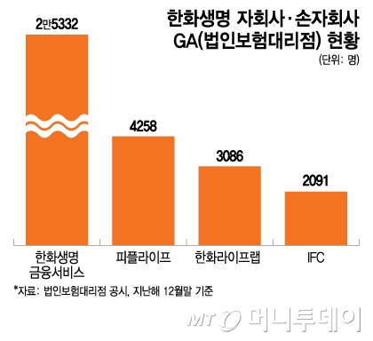 한화생명은 이번 인수까지 포함해 자회사·손자회사인 한화생명금융서비스, 피플라이프, 한화라이프랩, IFC 등 총 4개의 GA 채널을 확보하게 됐다. 보험설계사만 약 3만5000명으로 업계 2위인 인카금융서비스(1만7000명)와도 2배 이상 차이 난다.