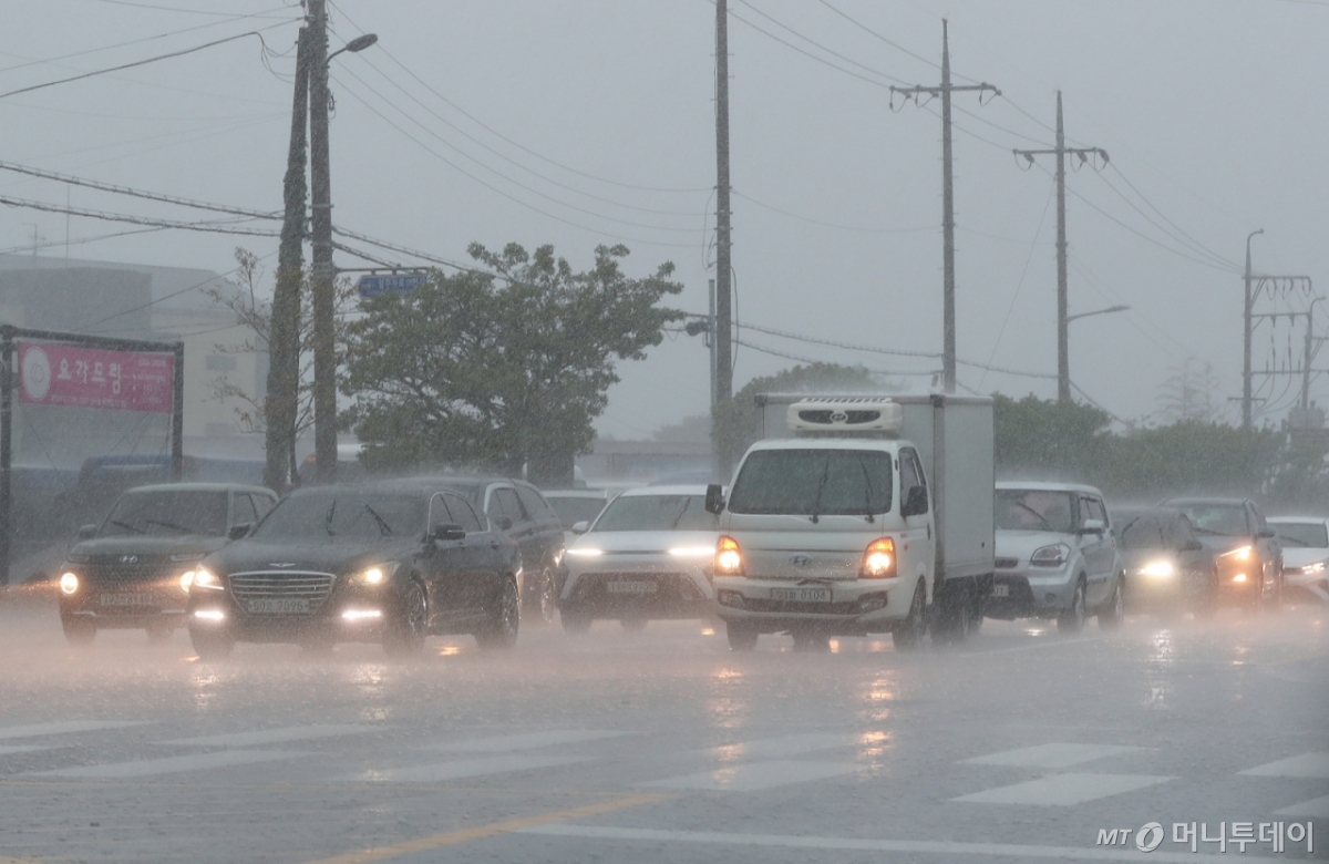 ![[서귀포=뉴시스] 우장호 기자 = 사진은 기사와 직접적인 관련이 없음. 폭우가 쏟아진 1일 오후 제주 서귀포시 강정동 인근 도로에서 차량들이 낮시간인데도 전조등 환히 밝히고 있다. 2025.05.01./사진=우장호](https://thumb.mt.co.kr/cdn-cgi/image/f=avif/21/2025/05/2025050217010558754_1.jpg)