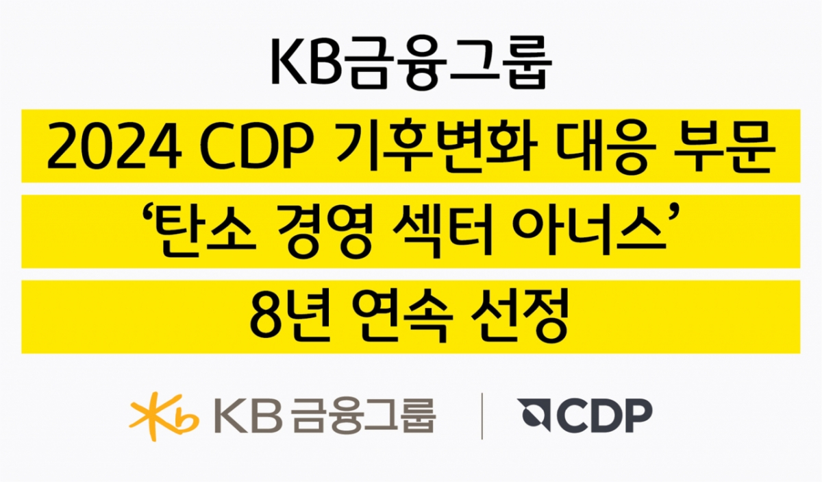 KB금융그룹이 19일 탄소정보공개 프로젝트(Carbon Disclosure Project, CDP) 한국위원회가 국내 산업별 '기후변화 대응 부문 우수 기업'에게 수여하는 '탄소경영 섹터 아너스'에 8년 연속 선정됐다.
