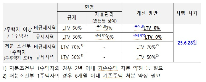 아울러 은행권에서 자율적으로 시행 중인 유주택자에 대한 주담대는 수도권과 규제지역에서는 받을 수 없게 된다. 2주택 이상 보유자가 추가로 주택을 구입하거나, 1주택자가 기존 주택을 처분하지 않고 추가 주택을 구입하는 경우 주담대가 금지된다. 1주택자가 기존 주택을 6개월 이내에 처분할 경우(처분 조건부 1주택자)에만 대출이 나온다.