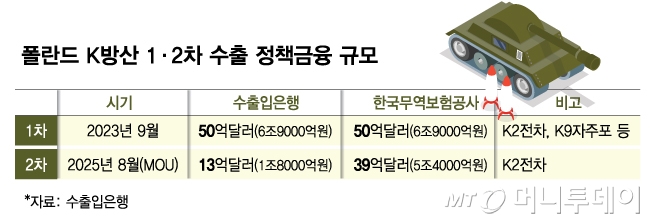 4일 금융권에 따르면 수출입은행과 한국무역보험공사(무보)는 지난 1일(현지시간) 폴란드개발은행과 총 52억달러(약 7조2000억원) 규모의 수출금융 지원을 위한 업무협약(MOU)을 체결했다. 지원 자금은 현대로템의 K2 전차 수출 계약에 따른 구매자금으로 활용될 예정이다. 이번 협약에서 수출입은행이 13억달러(약 1조8000억원), 무보가 39억달러(약 5조4000억원)를 각각 제공한다. 이는 총 수출계약금 65억달러(약 9조원)의 80%에 해당하는 규모다.