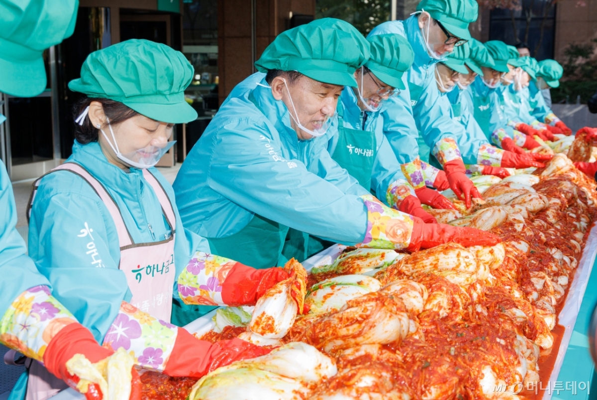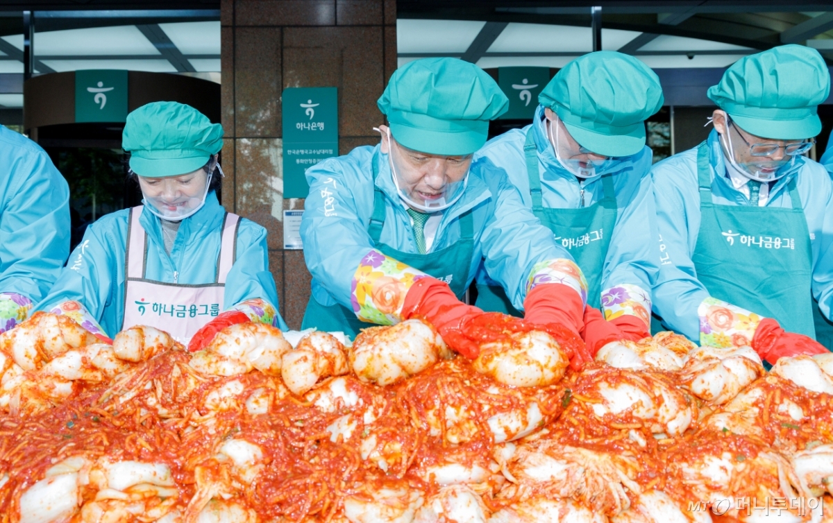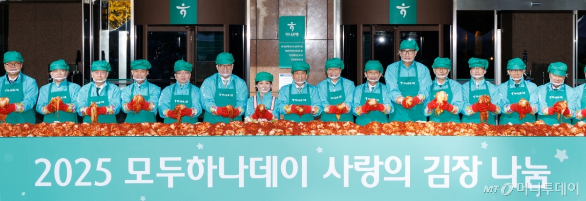함영주 하나금융지주 회장(왼쪽 네번째)이 10일 서울 중구 하나금융그룹 명동사옥에서 열린 '2025 모두하나데이 사랑의 김장 나눔'에서 임직원들과 기념촬영을 하고 있다. 독자들의 PICK! 홍서범·조갑경 아들, 아내 임신 중 '여교사와 불륜'…"위자료 배상" 8살 차이 장모·사위, 금단의 관계로...회복 불가 외도 사례 아내 산후조리원에 있는데...'친구 여친'과 불륜 남편, 성폭행 고소전까지 "술 마시면 병원 집어넣어" 이호선, 외도 부부에 '초강수' 솔루션
