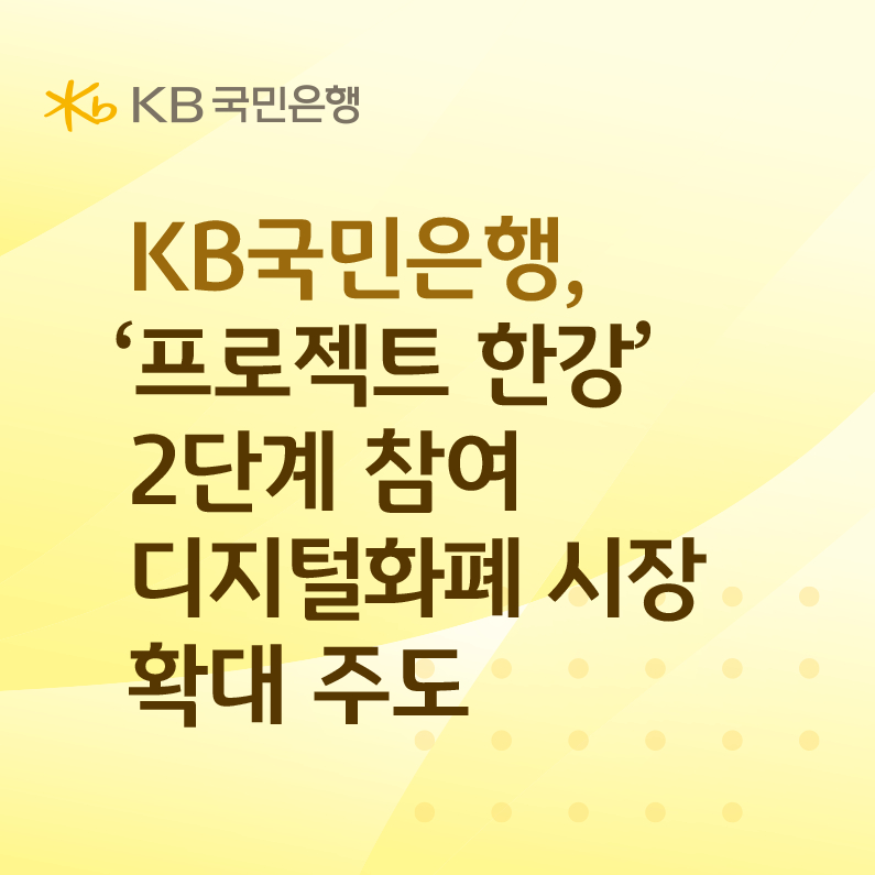 KB국민은행은 한국은행과 금융위원회, 금융감독원이 함께 주관하는 디지털화폐 실증 사업 '프로젝트 한강' 2단계 사업에 참여해 실증 데이터 기반의 디지털화폐 시장 확대와 공공 금융 혁신에 나선다고 20일 밝혔다.