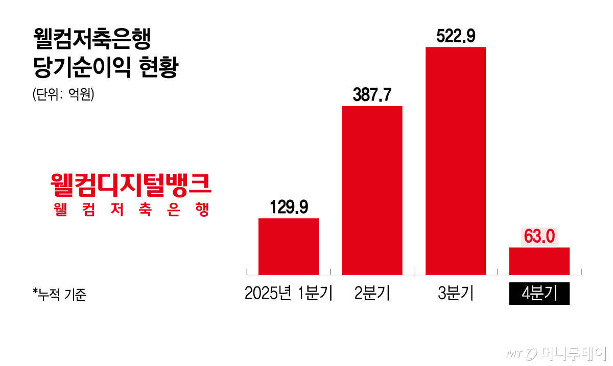 웰컴저축은행은 지난해 3분기만 해도 누적 522억9000만원의 당기순이익을 기록했다. 하지만 4분기에만 약 460억원 당기순손실을 내면서 결산 실적이 고꾸라졌다.