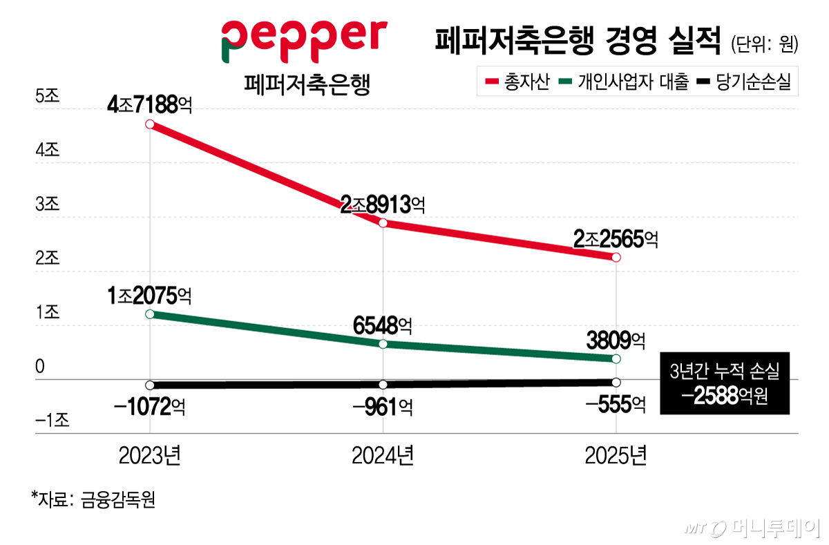 페퍼저축, 3년간 2600억 누적 손실… 연간 70억 운영비도 부담