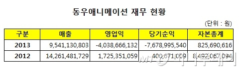 ◇"저력 믿는다"..올해 120억 매출 가능=비록 법정관리에 들어갔지만 동우는 아직 희망을 놓지 않고 있다. 여전히 외주 제작 문의가 쇄도하고 있는데다, 일본과 공동제작한 애니메이션이 새로운 시즌방영을 앞두고 있어 올해도 120억원 가량의 매출이 가능할 전망이다. 여기에 이자부담에서도 자유로워져 기업회생에 만전을 기할 수 있다는 판단이다.