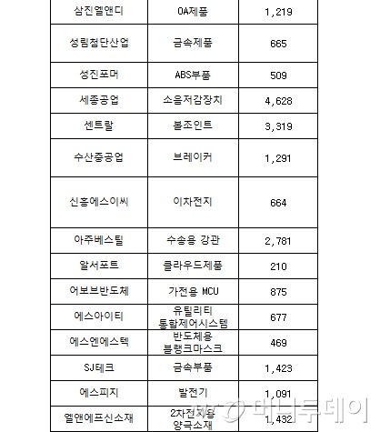 새롭게 추가된 기업은 전자, 자동차, 기계, 의약, 섬유 등 다양한 업종이 속했으며 특히 소프트웨어(SW) 분야에서 7개 기업이 새롭게 선정됐다. 지역별로는 수도권 지역 기업이 33개, 수도권 이외 지역이 23개다.