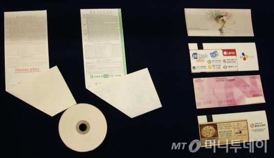 감열지를 받아 든 첫 느낌은 '가뿐함'이었다. 평량(종이 1㎡당 무게) 38g. 일반 인쇄용지 중에서도 가벼운 축에 속하는 복사지의 절반 수준 무게라는 말이 실감났다.