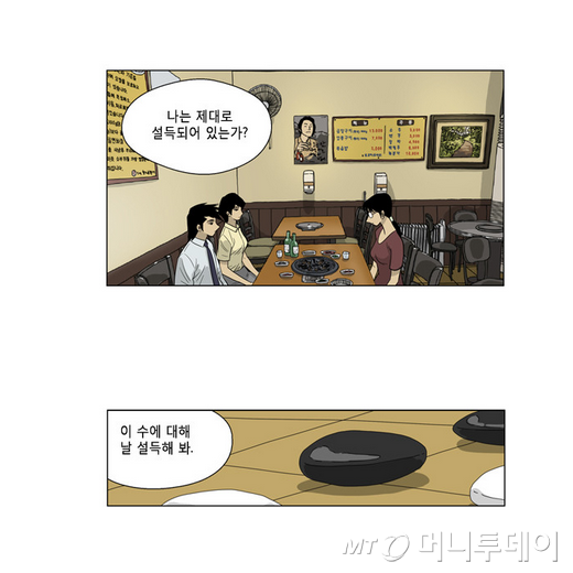 조치훈 9단의 말이다. 윤 작가는 "홀로 바둑을 두며 나의 '수'와 상대방의 '수'를 고민해오던 장그래가 옆 팀 박대리를 위하는 마음에 훈수를 두려다 바둑판보다 더 큰 세상을 깨닫는 장면"이라고 말한다.