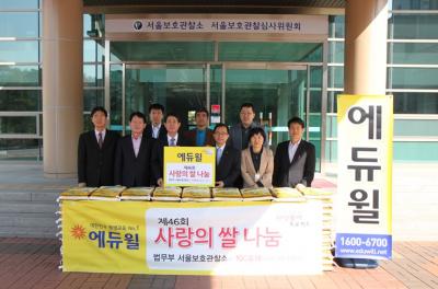 기증식에는 법무부 서울보호관찰소 김영홍 소장과 에듀윌 윤병현 이사 등이 참석했으며, 에듀윌은 어려운 이웃을 위해 써 달라며 ‘사랑의 쌀’을 전달했다. 에듀윌이 기증한 ‘사랑의 쌀’은 보호관찰 청소년들을 돕는데 쓰일 예정이다.
