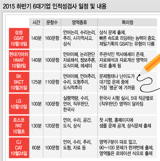 9월 한달간 자소서에 매달렸던 취준생들은 10월엔 매주 토·일요일마다 인적성검사 일정이 잡혀있어 숨돌릴 틈도 없다. 취업전문가들은 스펙초월 직무역량중심으로 인재를 뽑겠다고 표방하고 나선 기업들이 서류전형을 통한 필터링이 어려워진 만큼 인적성검사의 중요성이 더 커질 것이라고 전망했다.