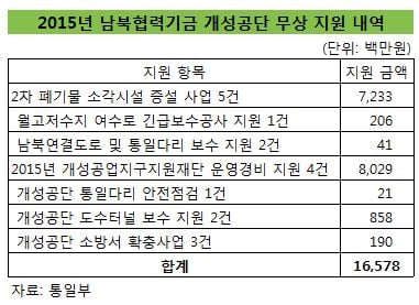 정부의 손실도 막대할 것으로 보인다. 지난해만 남북협력기금을 통해 개성공단에 무상 지원한 금액은 2차 폐기물 소각시설 증설사업(72억원), 개성공업지구지원재단 운영경비(80억원) 개성공단 도수터널 보수 지원(8억원) 등 166억원이다. 이밖에 개성공단 운영대출(511억원), 개성공단 기반조성(652억원) 등 지난해 개성공단에 1163억원의 자금을 지원했다.