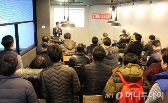 스트라이크존은 스크린골프로 새로운 시장을 일군 골프존유원그룹의 계열사인 뉴딘콘텐츠가 스포츠와 IT(정보기술)을 융합해 만든 시뮬레이션 스크린야구다. 지난달 서울 논현동에 첫 직영 매장을 열고 본격적인 사업 확장을 추진하고 있다.