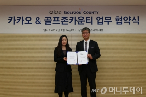 골프장 토털서비스기업 골프존카운티가 24일 카카오와 '골프 서비스 제공을 위한 업무협약'을 체결했다고 밝혔다.